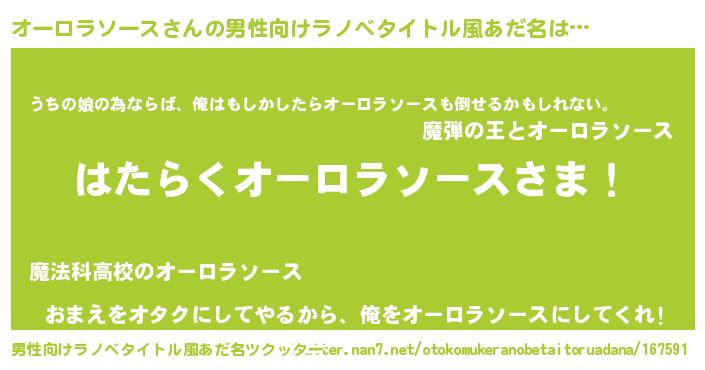 オーロラソースさんの男性向けラノベタイトル風あだ名をツクッター!