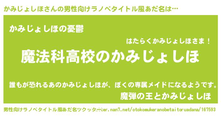 かみじょしほさんの男性向けラノベタイトル風あだ名をツクッター!