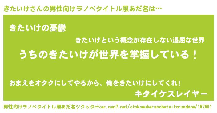 | 胡散臭い通販商品みたいなあだ名 | 『億万長者になれる霊験あらたかなお札…その名も「きたいけ」』 |