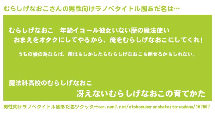 | ファンタジー風あだ名 | 『エターナルムラシゲナオコー』 |