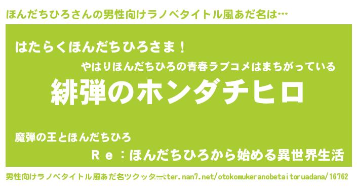 | 女子向けラノベタイトル風あだ名 | 『シンデレラほんだちひろ家の靴箱館』 |