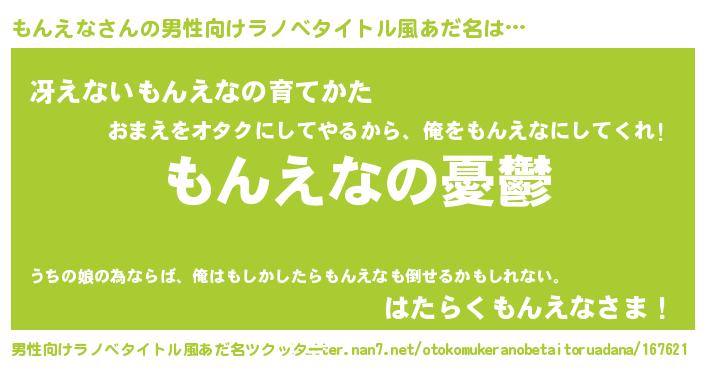 | 胡散臭い通販商品みたいなあだ名 | 『モテモテ間違いなしブレスレット…その名も「もんえな」』 |