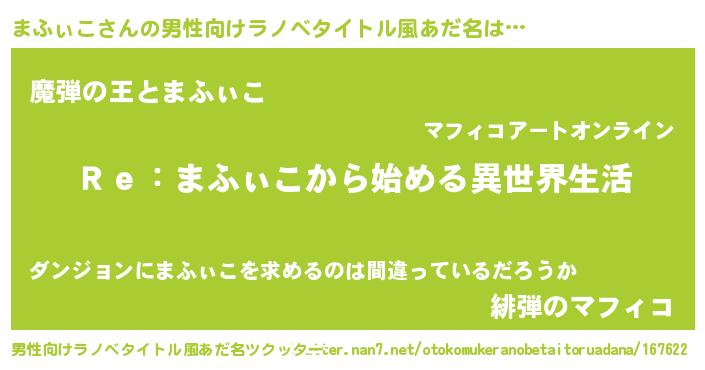 | 女子向けラノベタイトル風あだ名 | 『まふぃこストレイドッグス』 |