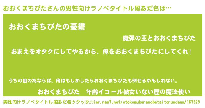 | 胡散臭い通販商品みたいなあだ名 | 『100人中100人が認めたイリジウム磁石…その名も「おおくまちびた」』 |