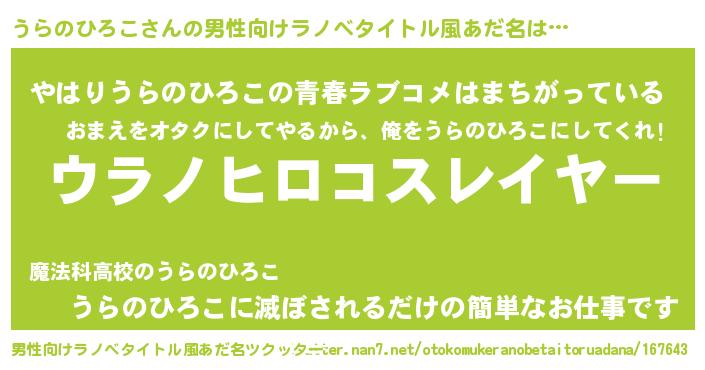| 意味不明あだ名 | 『めかぶ科うらのひろこ属』 |