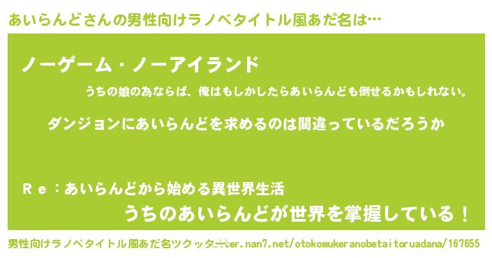 女子向けラノベタイトル風あだ名 | 『あいらんどは平凡を望む』 |