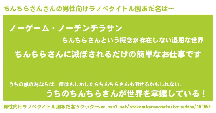 | ヒーロー風カッコイイあだ名 | 『天空の使者ちんちらさん』 |