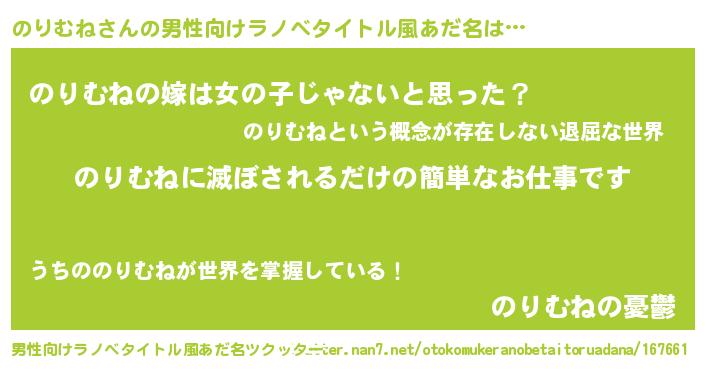 | 女子向けラノベタイトル風あだ名 | 『横柄のりむねと宰相陛下』 |