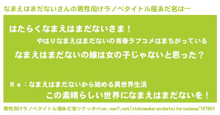 | 女子向けラノベタイトル風あだ名 | 『なまえはまだない様がみてる』 |