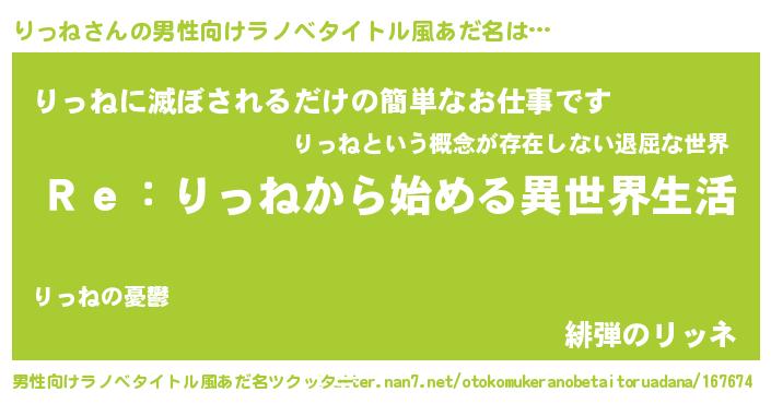 りっねさんの男性向けラノベタイトル風あだ名をツクッター!