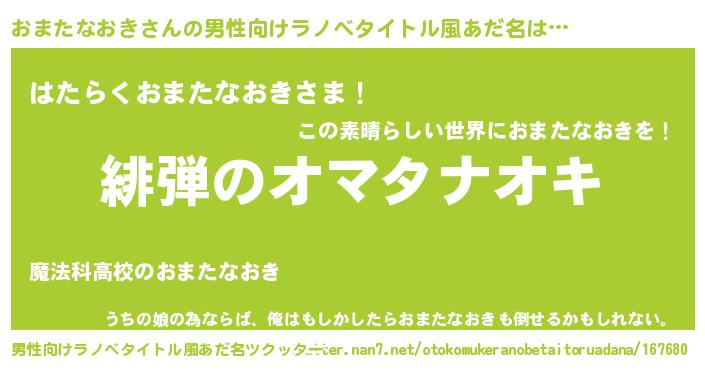 | 欧米人風あだ名 | 『おまたなおき・ステッグマイヤー』 |