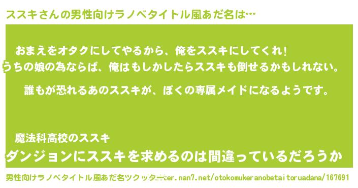 | 女子向けラノベタイトル風あだ名 | 『ススキの契約王妃』『ススキの婚約者』 |