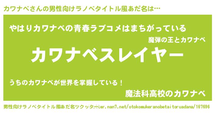 | ポケモン風あだ名 | 『カワキング』『カワナダネ』 |