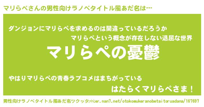 | 女子向けラノベタイトル風あだ名 | 『(仮)マリらぺのやんごとなき事情』 |