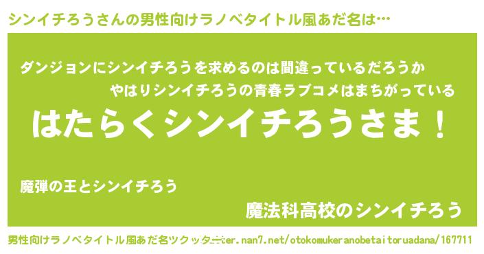 | 伝説のあだ名 | 『孤高の魔法使いシンイチろう』 |