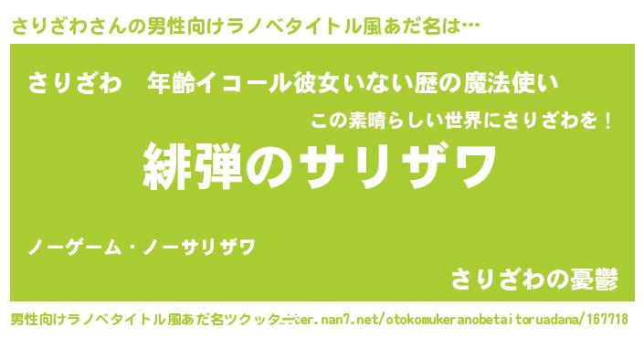 | 女子向けラノベタイトル風あだ名 | 『シンデレラさりざわ家の靴箱館』 |