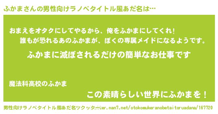 ふかまさんの男性向けラノベタイトル風あだ名をツクッター!