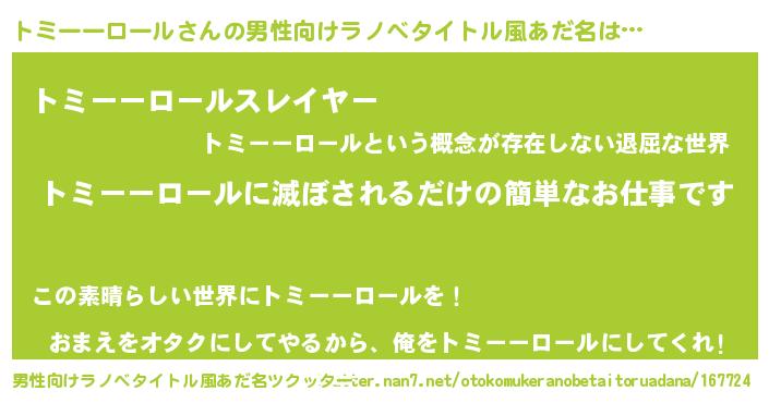 | ヘコむあだ名 | 『トミーーロール(笑)』『豆乳』 |