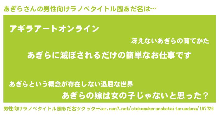 | ヘコむあだ名 | 『あぎにー』『あぎを』『あぎら(笑)』 |