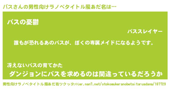 | 女子向けラノベタイトル風あだ名 | 『バスの契約王妃』 |