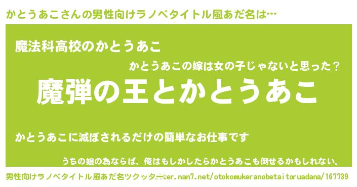 | 意味不明あだ名 | 『住所不定無職かとうあこ(40歳)』 |