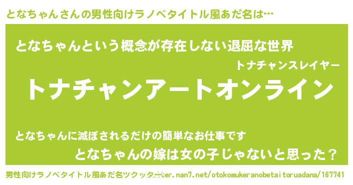 | 女子向けラノベタイトル風あだ名 | 『誰かこのとなちゃんを説明してください! ~契約から始まるウェディング~』 |