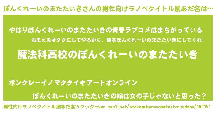 | 意味不明あだ名 | 『自称ぼんくれーいのまたたいき』 |