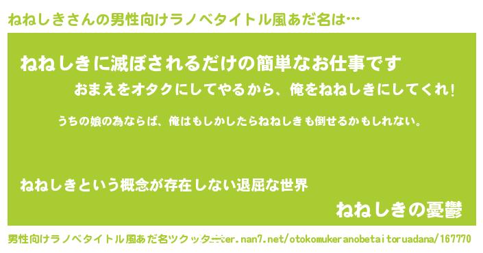 | 胡散臭い通販商品みたいなあだ名 | 『運命の人と巡り会える高級そうな絵画…その名も「ねねしき」』 |