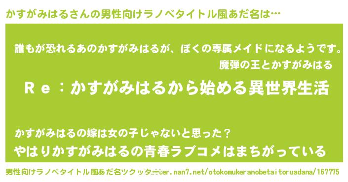 | 女子向けラノベタイトル風あだ名 | 『闇のかすがみはる』 |