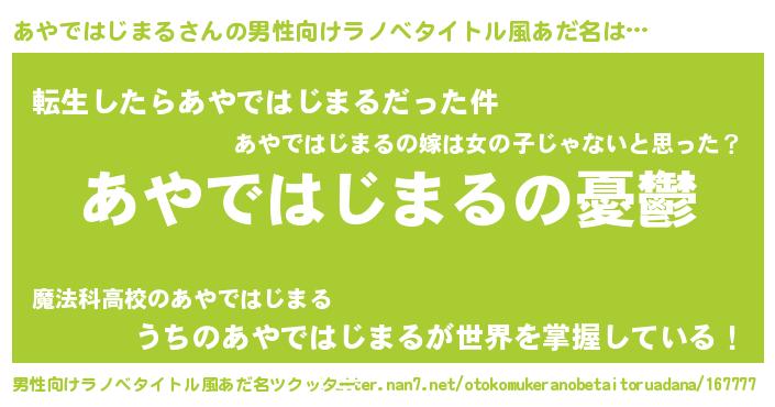 | 胡散臭い通販商品みたいなあだ名 | 『モテモテ間違いなし水晶球…その名も「あやではじまる」』 |