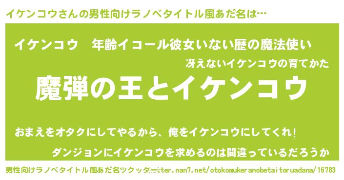 | 女子向けラノベタイトル風あだ名 | 『イケンコウが死なない童話 林檎のイケンコウの診療簿』 |