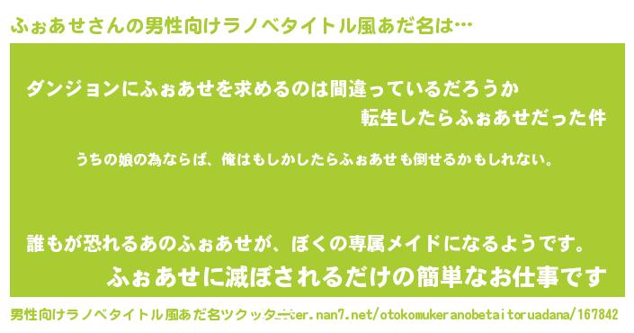 | 女子向けラノベタイトル風あだ名 | 『ふぉあせ伯爵の花嫁』 |