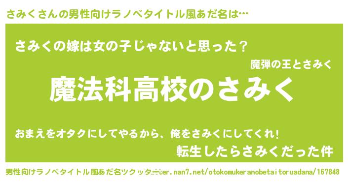| 女子向けラノベタイトル風あだ名 | 『さみくアンティーク』 |