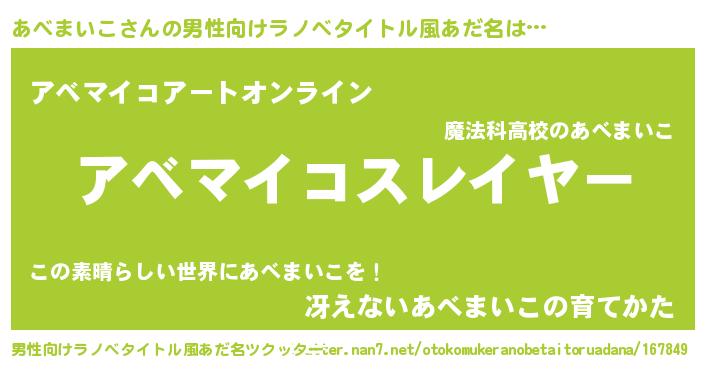 | ヒーロー風カッコイイあだ名 | 『スーパーアベマイコ』『仮面アベダー』 |