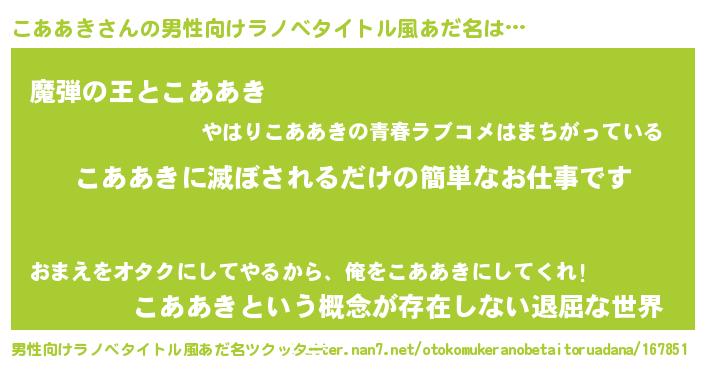 | 意味不明あだ名 | 『住所不定無職こああき(68歳)』 |