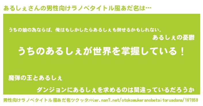 | 胡散臭い通販商品みたいなあだ名 | 『運命の人と巡り会える高級そうな壺…その名も「あるしぇ」』 |