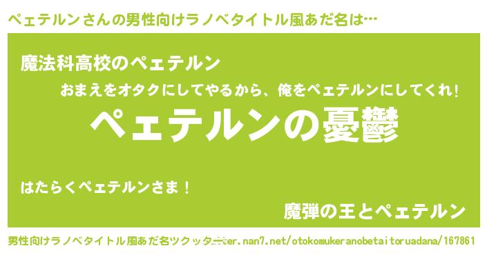 | 胡散臭い通販商品みたいなあだ名 | 『モテモテ間違いなし霊験あらたかなお札…その名も「ペェテルン」』 |