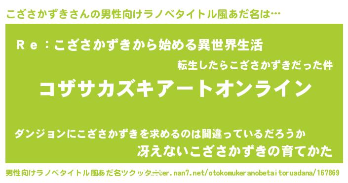 | ファンタジー風あだ名 | 『コザフェル』『ゼコザトゥ』 |