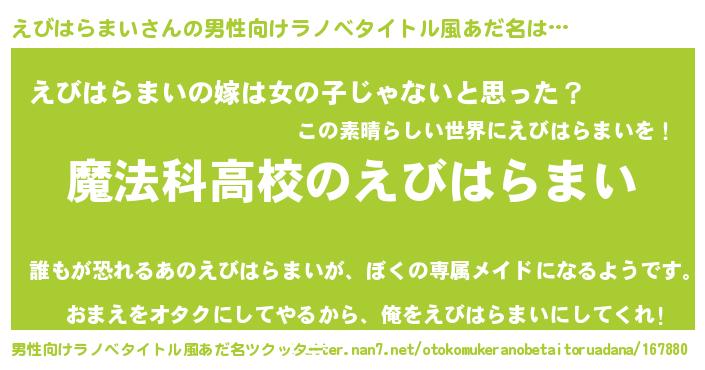 | ヒーロー風カッコイイあだ名 | 『ウルトラ戦士エビハラマイ』 |
