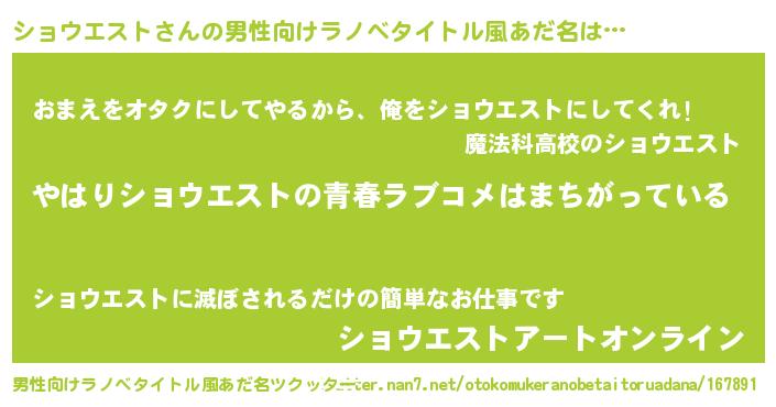 | 意味不明あだ名 | 『ショウエストフォーエバー』 |