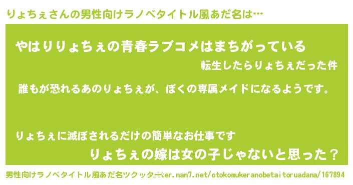 | 胡散臭い通販商品みたいなあだ名 | 『前代未聞の健康食品…その名も「りょちぇ」』 |
