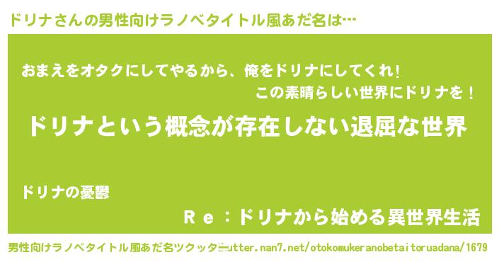 | 女子向けラノベタイトル風あだ名 | 『異世界で失敗しない100のドリナ』 |