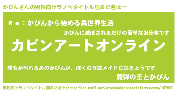 | ヒーロー風カッコイイあだ名 | 『スーパーカビン』『サイバー戦士カビン』 |