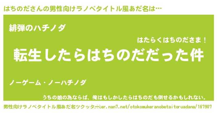 | ヒーロー風カッコイイあだ名 | 『ウルトラはちのだマン』『幻影騎士ハチ』 |