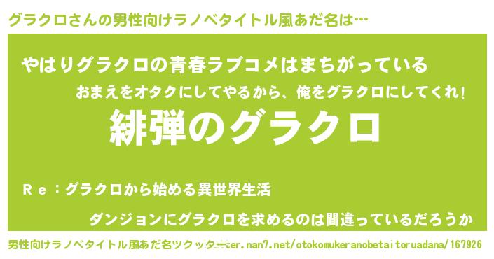 | 意味不明あだ名 | 『グラクロフォーエバー』『自称グラクロ』 |