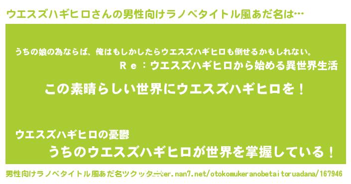 | 意味不明あだ名 | 『住所不定無職ウエスズハギヒロ(40歳)』 |