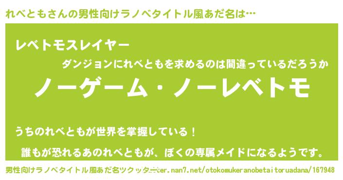 | ヘコむあだ名 | 『れべとも(苦笑)』『れべを』『豆乳』 |