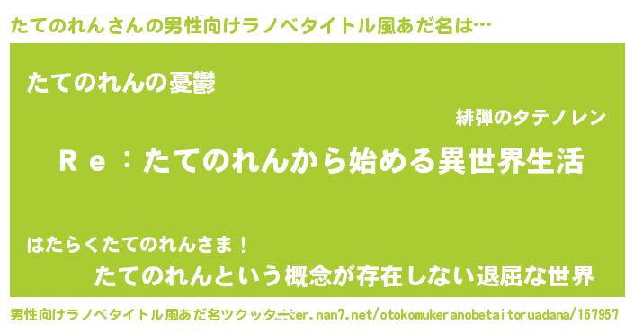 | 意味不明あだ名 | 『自称たてのれん』『ペロリンたてのれん』 |
