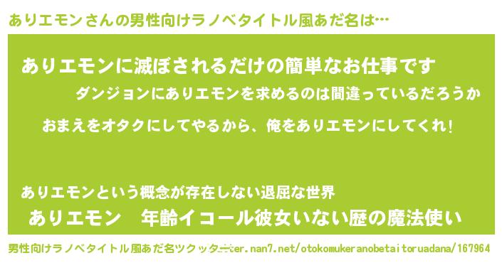 | 女子向けラノベタイトル風あだ名 | 『ありエモン恋絵巻』 |