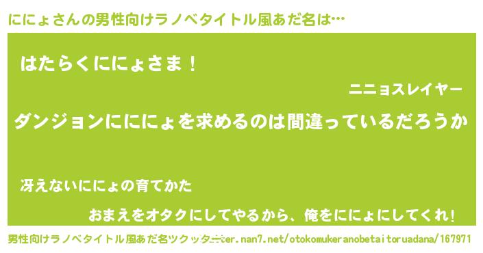 | 意味不明あだ名 | 『とにかく怪しいににょ』『自称ににょ』 |